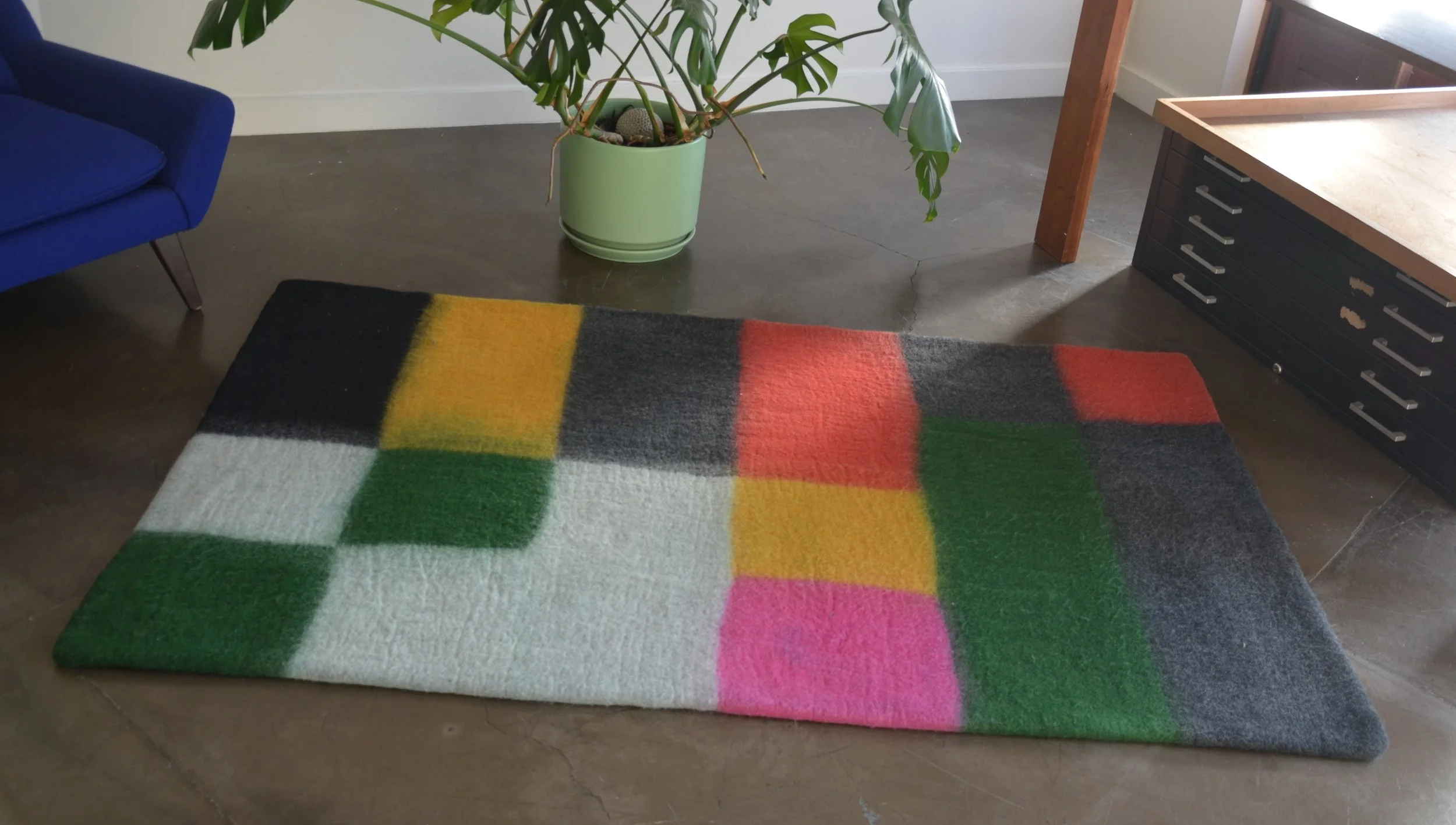 Lofi rug 4’ x 6’ Peace Industry ® 100% soft New Zealand wool felt. Custom colors and sizes in 10 weeks.