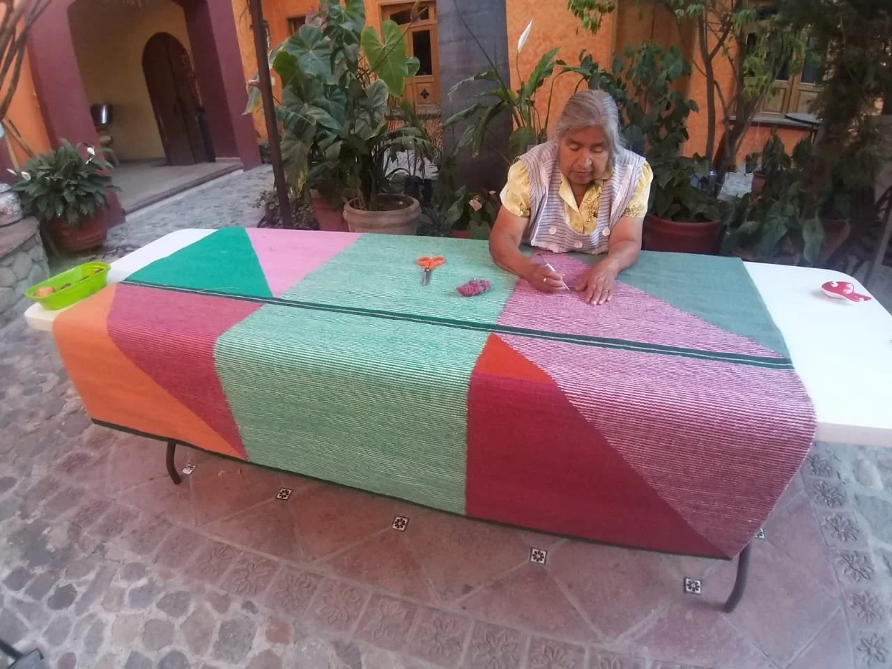 A- Sincerely we don’t have a favorite part of our job. We do it to support all of our family and because it is a gift from our ancestors. While I grew up, I learned to love our work because all the time that we spent weaving, dying or just cleaning the wool is enjoyed with the family, with our grandmother or grandfather eating a fruit enjoying the hard day of washing the skeins of yarn or talking about good news in the family weaving on the loom.