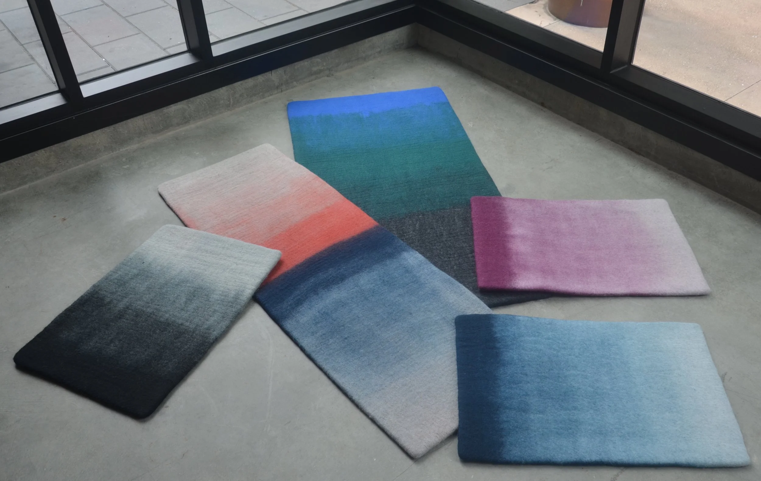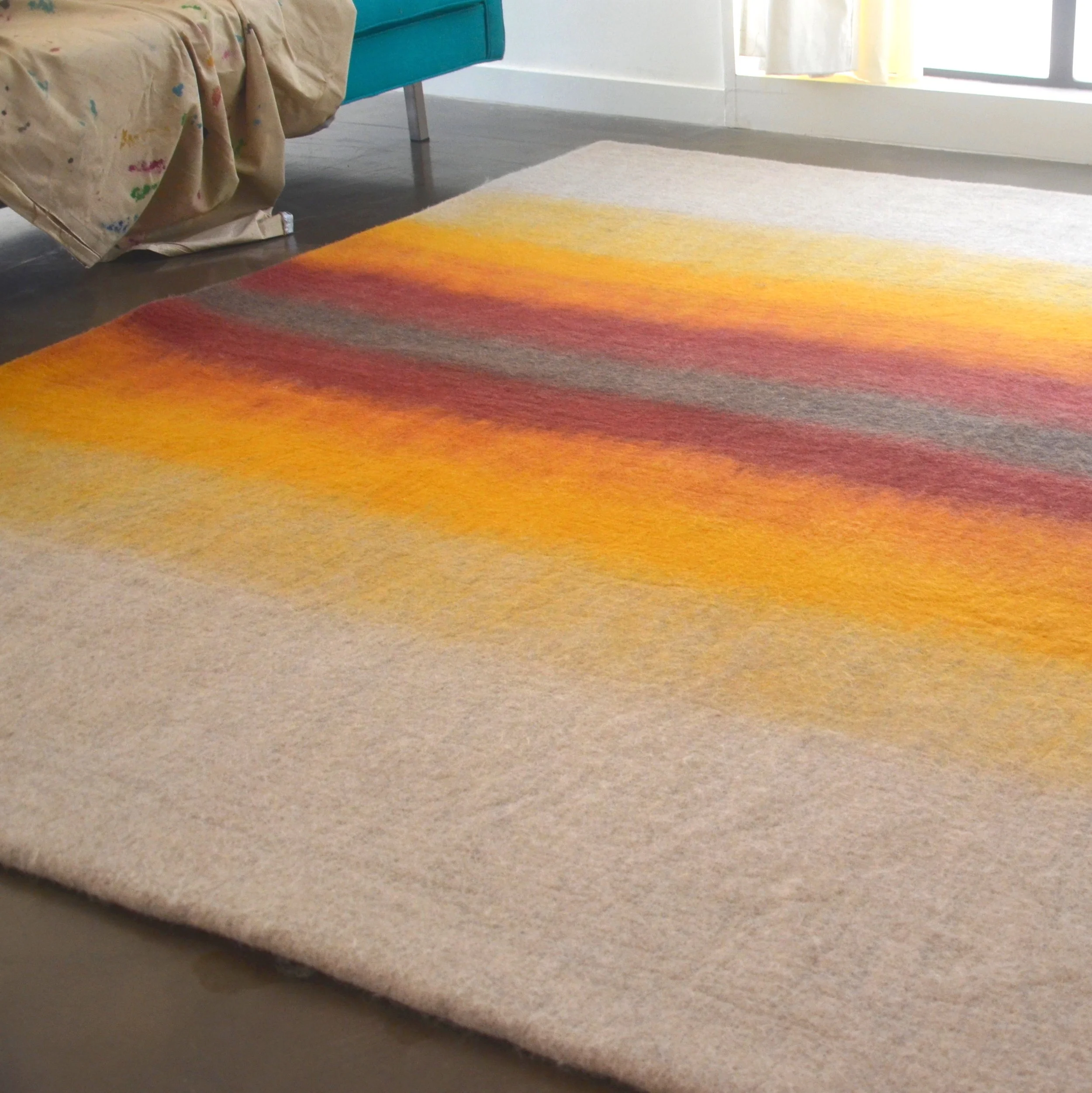 Ombre4’ x 6’ Peace Industry ® Flicker rug 100% hand made wool felt. Available in custom colors and sizes in 10 weeks