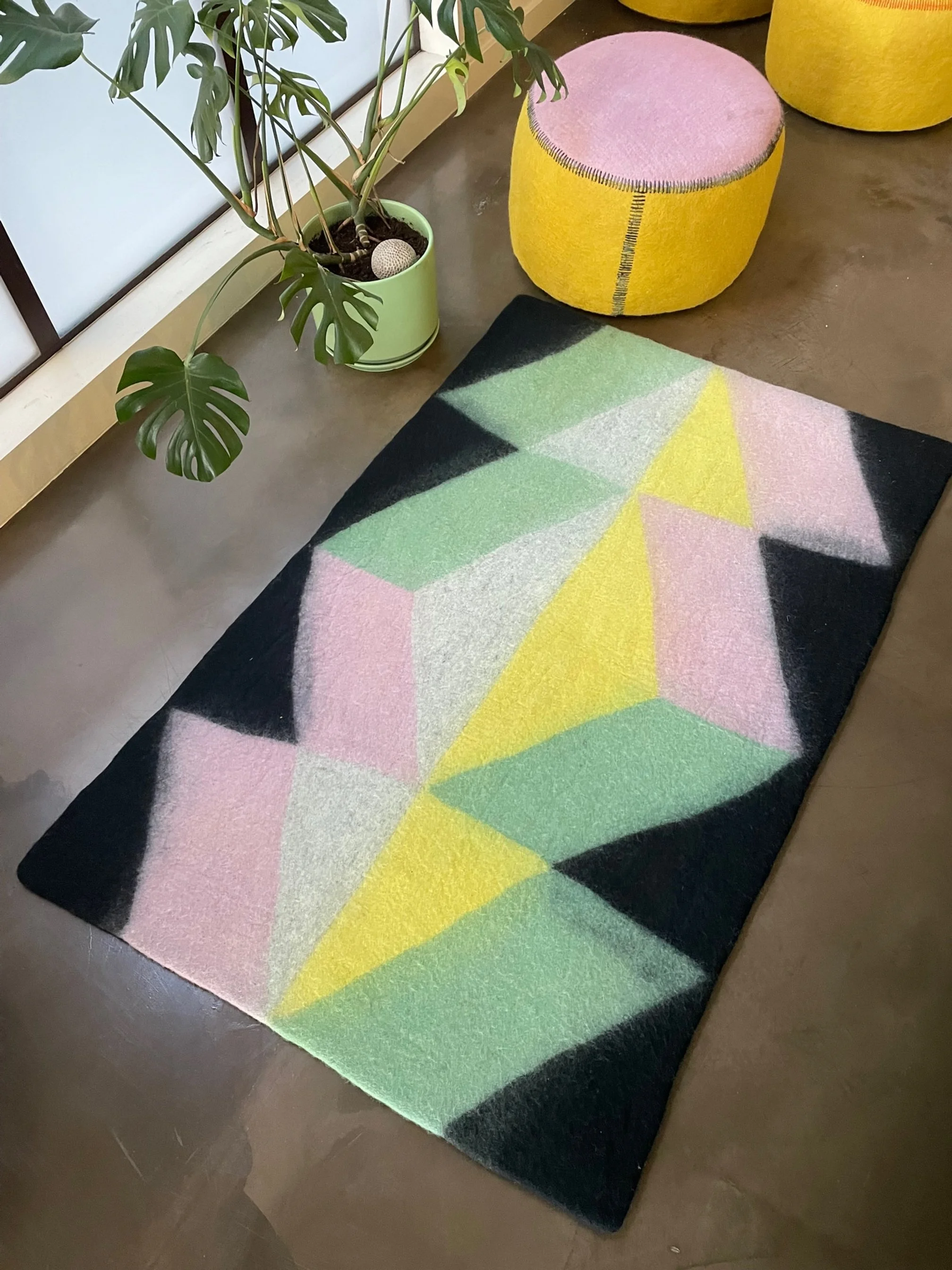 Frida4’ x 6’ Peace Industry ® Frida rug 100% hand made wool felt. Available in custom colors and sizes in 10 weeks