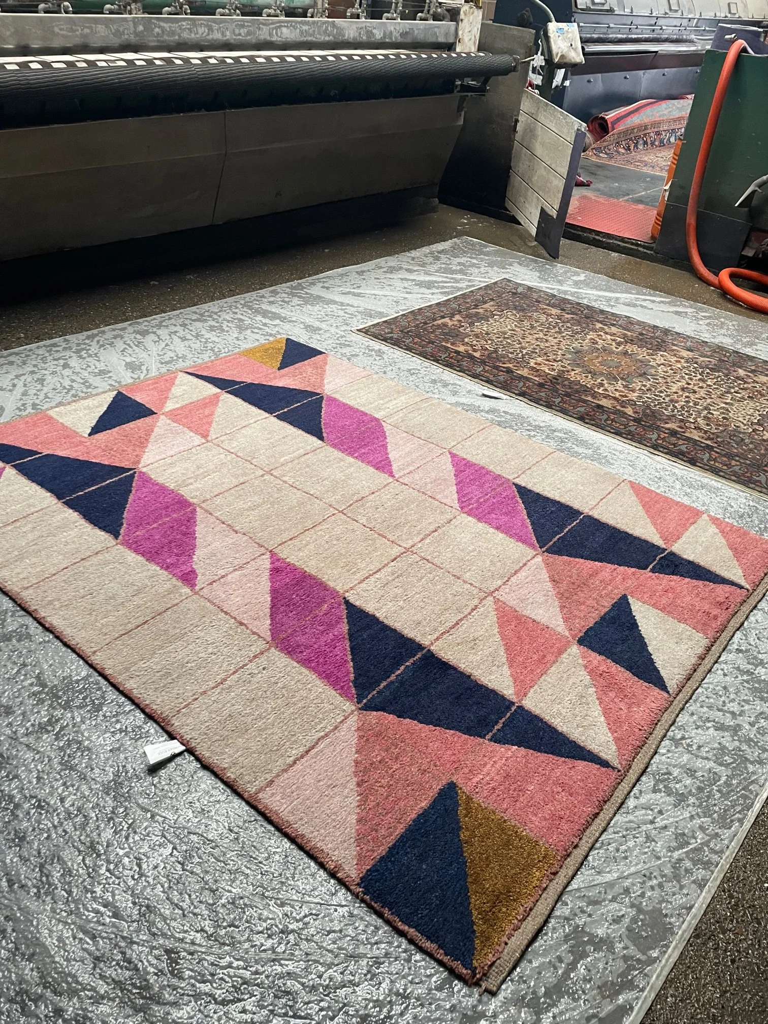 After decades of washing Peace Industry ® rugs, Simonian is the felt cleaning expert in the U.S. We are working together to make, wash, and repair beautiful works of art for your floor. Pictured above is a Summit rug from the Kush-Up hand knotted collection getting their signature Refresh!